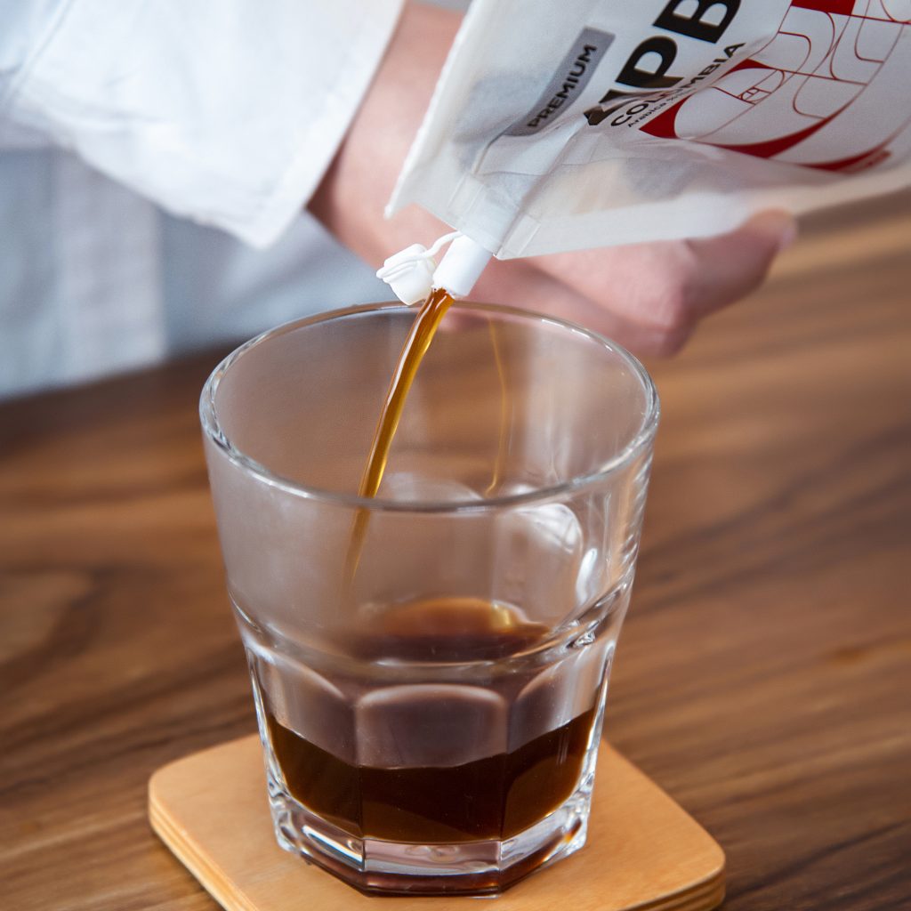 - Let the coffee steep in the bag for 3 minutes, then twist open the spout and pour into your cup.