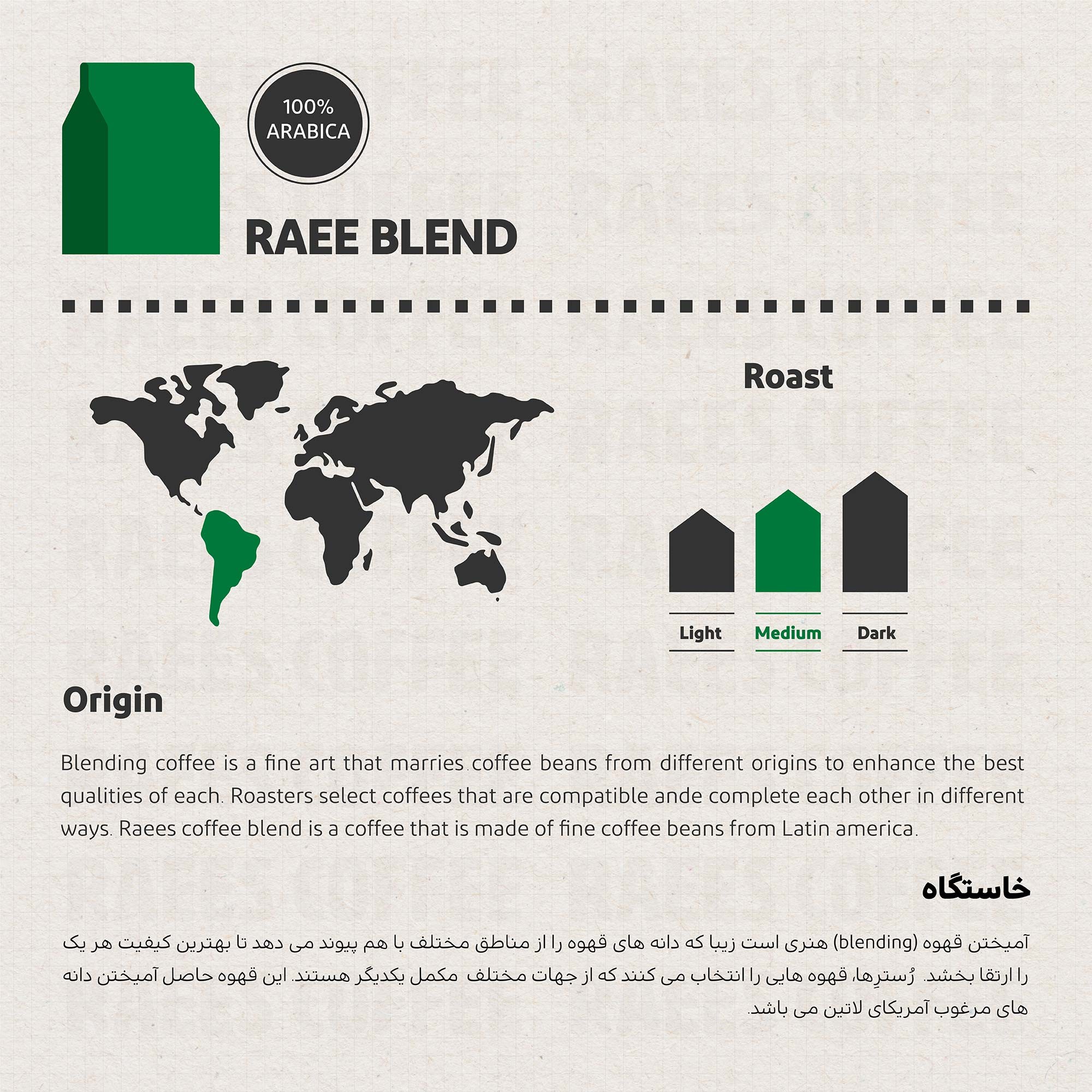 Blending coffee is a beautiful art that brings together beans from different regions to enhance the unique qualities of each. Roasters carefully select coffees that complement one another in various ways. Raees Blend is the result of combining high-quality beans from Latin America.